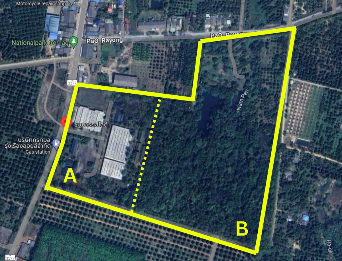 เป็นที่ดิน 2 แปลงต่อเนื่องกัน สามารถเลือกซื้อเฉพาะแปลง A (โรงงาน)
